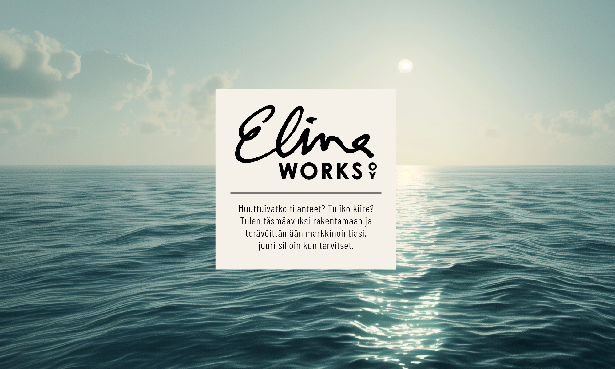 Viimeisimmät viisi vuotta olen työskennellyt markkinoinnin parissa oman yritykseni kautta. Toimin pääsääntöisesti kahdella tapaa: projektinvetäjänä/suunnittelijana mainostoimistopuolella tai osana yrityksen markkinointitiimiä projektiluonteisesti tai pidempiaikaisissa asiakkuuksissa.